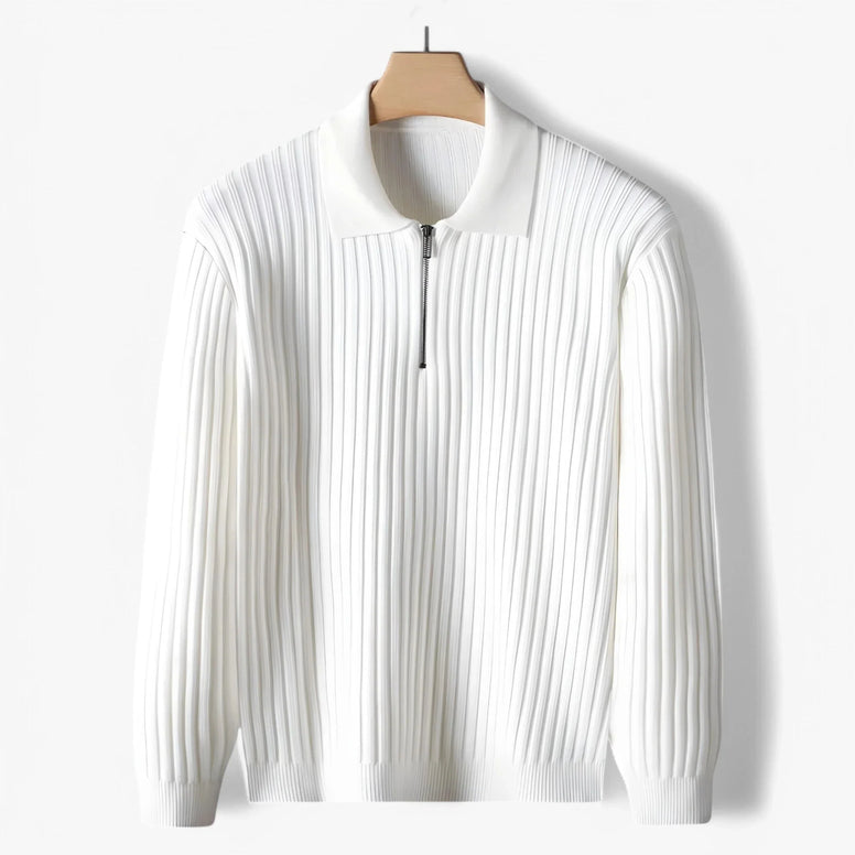 Este suéter canalé de mezcla suave de algodón y poliéster fusiona confort contemporáneo con una presencia discreta de lujo. Su media cremallera añade una nota de funcionalidad sin romper la línea elegante. Cada punto revela una artesanía cuidadosa y un compromiso con acabados de alta calidad; la textura canalé vertical realza la silueta, mientras el cuello doblado aporta un toque de sofisticación clásica. Diseñado para otoño e invierno, ofrece confort respirable y caída refinada que se adapta a looks minimalistas o más estructurados.