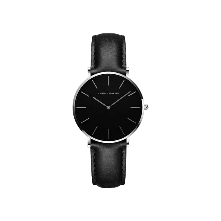 Refinado en su simplicidad, el reloj Noir Curve Slim Leather de Hannah Martin es una pieza atemporal para quienes valoran un diseño limpio y minimalista. Su caja de acero inoxidable pulido enmarca un mostrador negro-azabache sin numerales, mientras la pulsera de cuero fino ofrece una comodidad excepcional. Cada detalle atestigua una artesanía exigente, pensada para acompañar tanto el día a día como ocasiones formales. Edición limitada para coleccionistas, una declaración de identidad de la casa Hannah Martin.