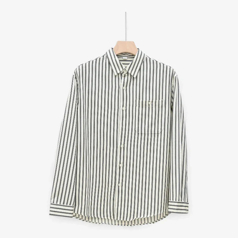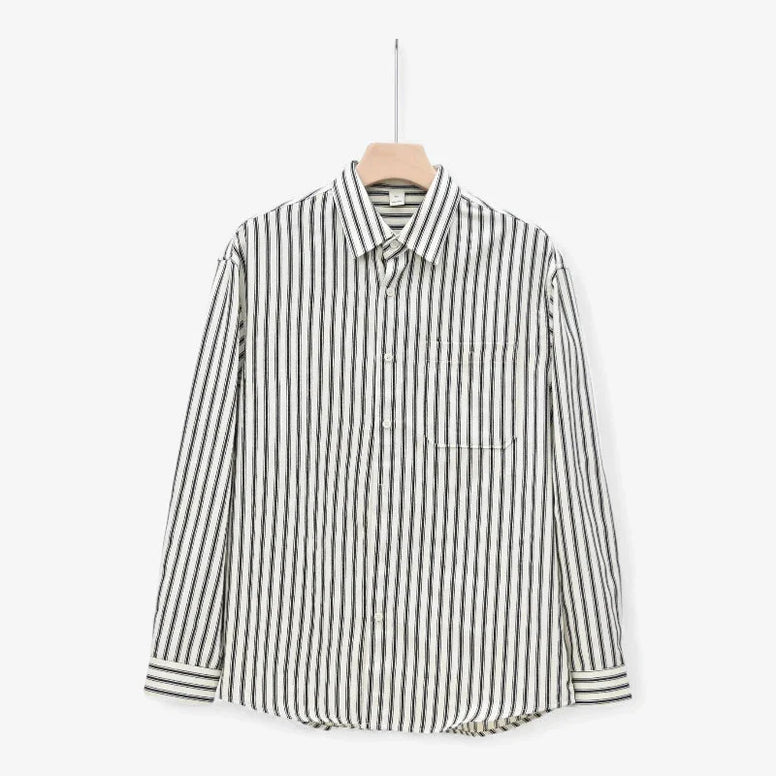 Old Money Camisa Rayada Botones, Colección Exclusiva, encarna una elegancia discreta que resiste la fugacidad de la moda. Con un refinado patrón de listra vertical y cuello cuadrado, rinde homenaje a la sastrería clásica. Diseñada para la primavera y el otoño, su estructura relajada ofrece comodidad para paseos cotidianos y fines de semana, sin perder la compostura. El tejido, suave y transpirable, garantiza una experiencia de uso agradable, mientras los botones definen la silueta con una precisión sobria. Es una prenda que comunica prestigio por su ejecución y invita a ser valorada a lo largo del tiempo.